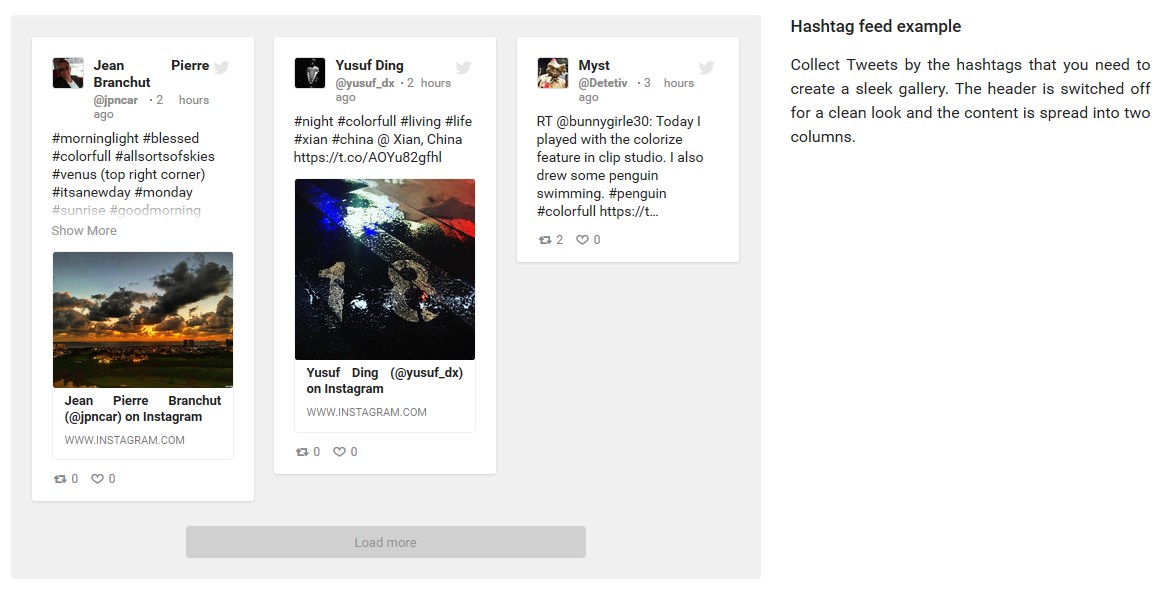 The extension features a simple and intuitive setup. Just enter the username or hashtag, adjust your display settings, and publish the module.
